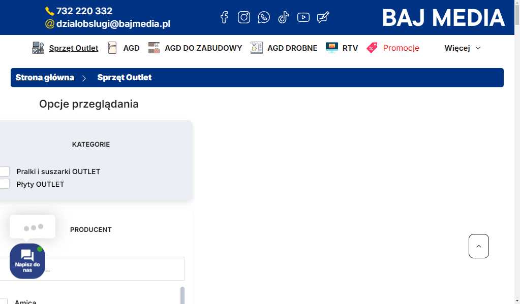 Bajmedia działa w obszarze sprzętu gospodarstwa domowego, stawiając na logiczny układ kategorii. W wizytówce katalogowej najważniejsze jest to, że oferta jest opisana z naciskiem na kryteria wyboru, bez nadmiaru pustych sformułowań.Outlet pojawia się jako częsty punkt startu do selekcji, dlatego treść skupia się na cechach użytkowych. Dzięki