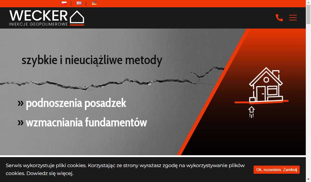 Charakterystyka Wecker: uszczelnianie i stabilizacja podłoża oraz korekta osiadań w budynkach - Wecker realizuje prace związane z stabilizacją podłoża w rejonie posadzek, które mogą pojawiać się, gdy pod płytą powstają pustki lub gdy podłoże traci nośność. W ...